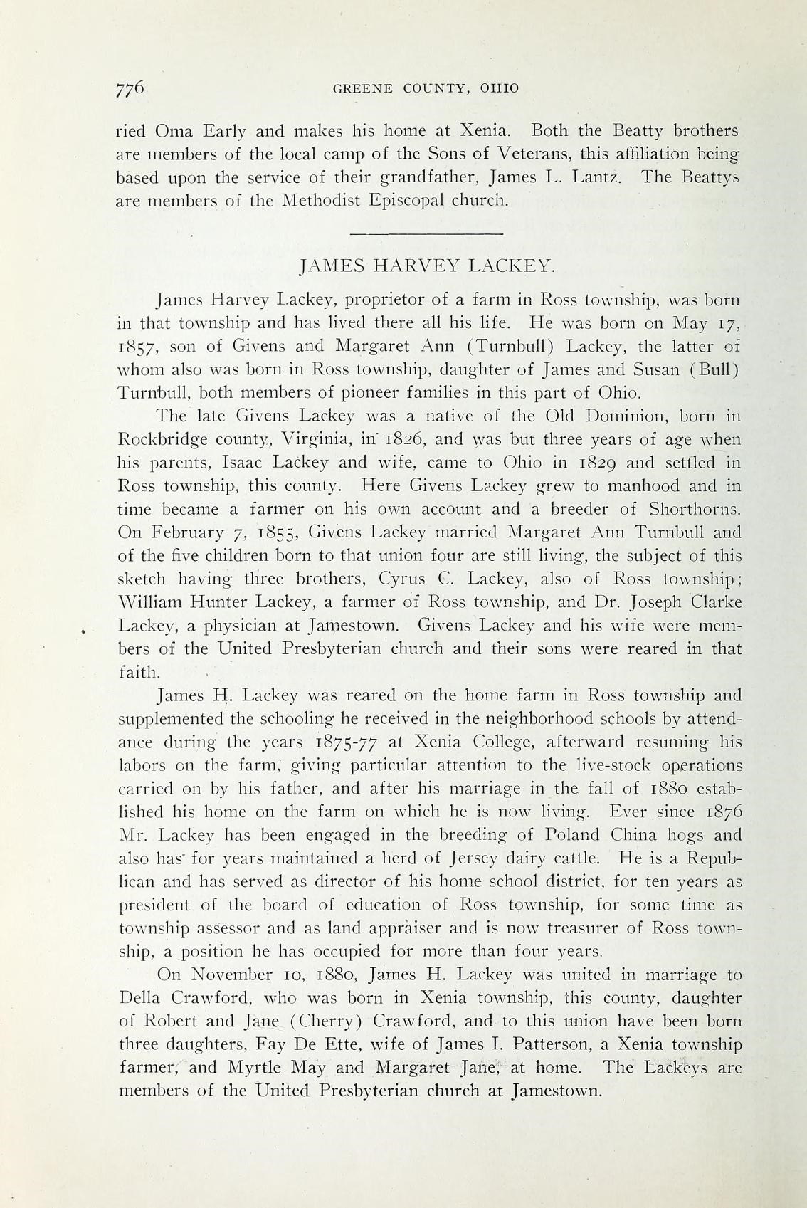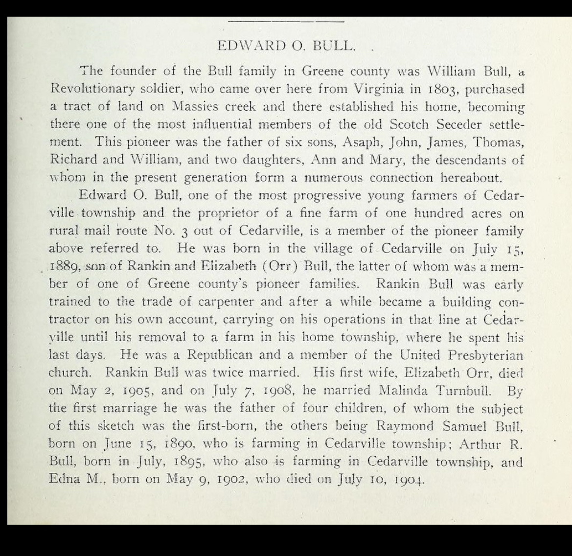 Amos S Bull History of Greene County, Ohio, its people, industries and institutions 1918 page 923