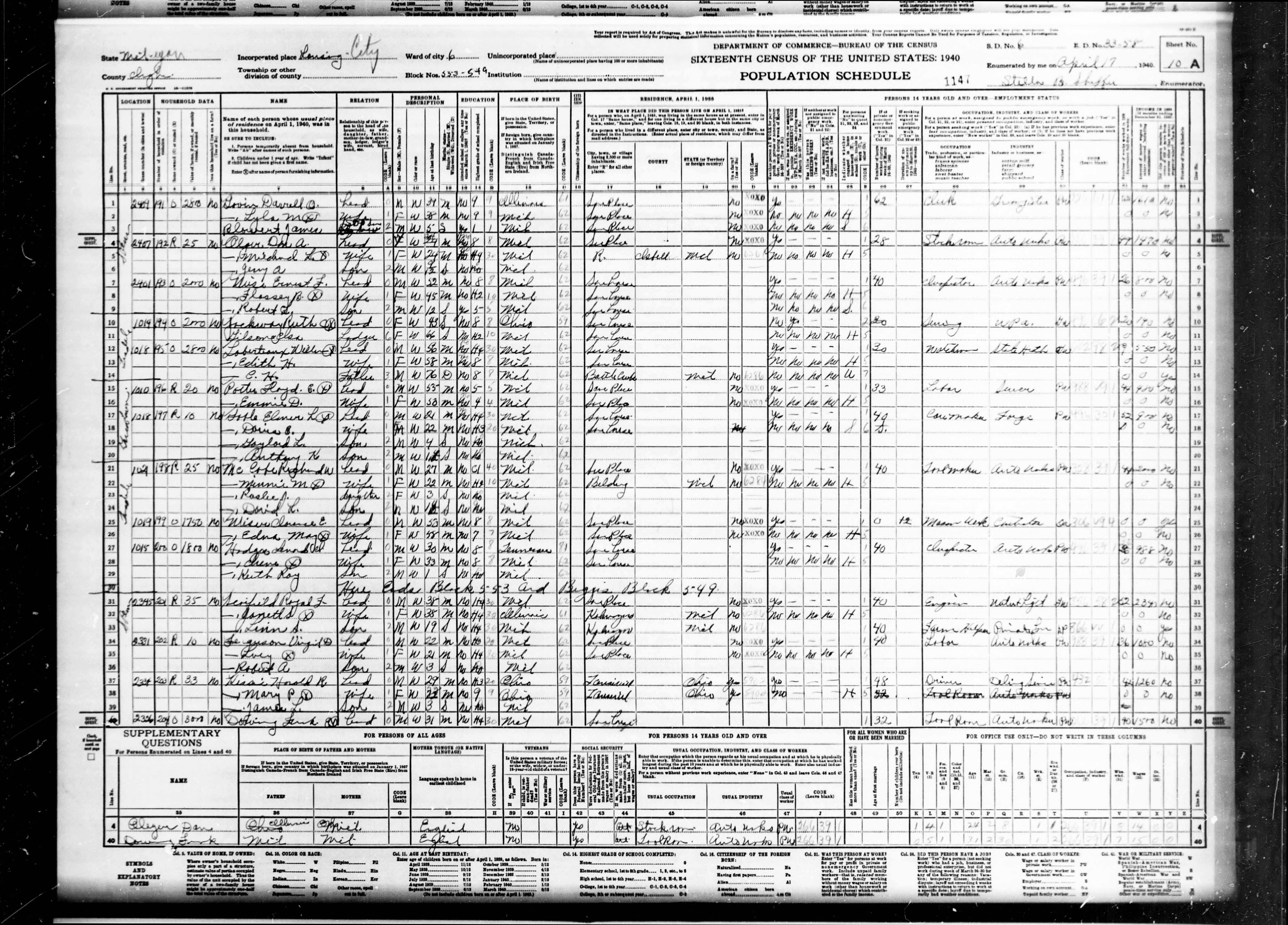 | Residence | He lived in Lansing, Ingham, Michigan, USA, in 1940.24,25,4,10 |