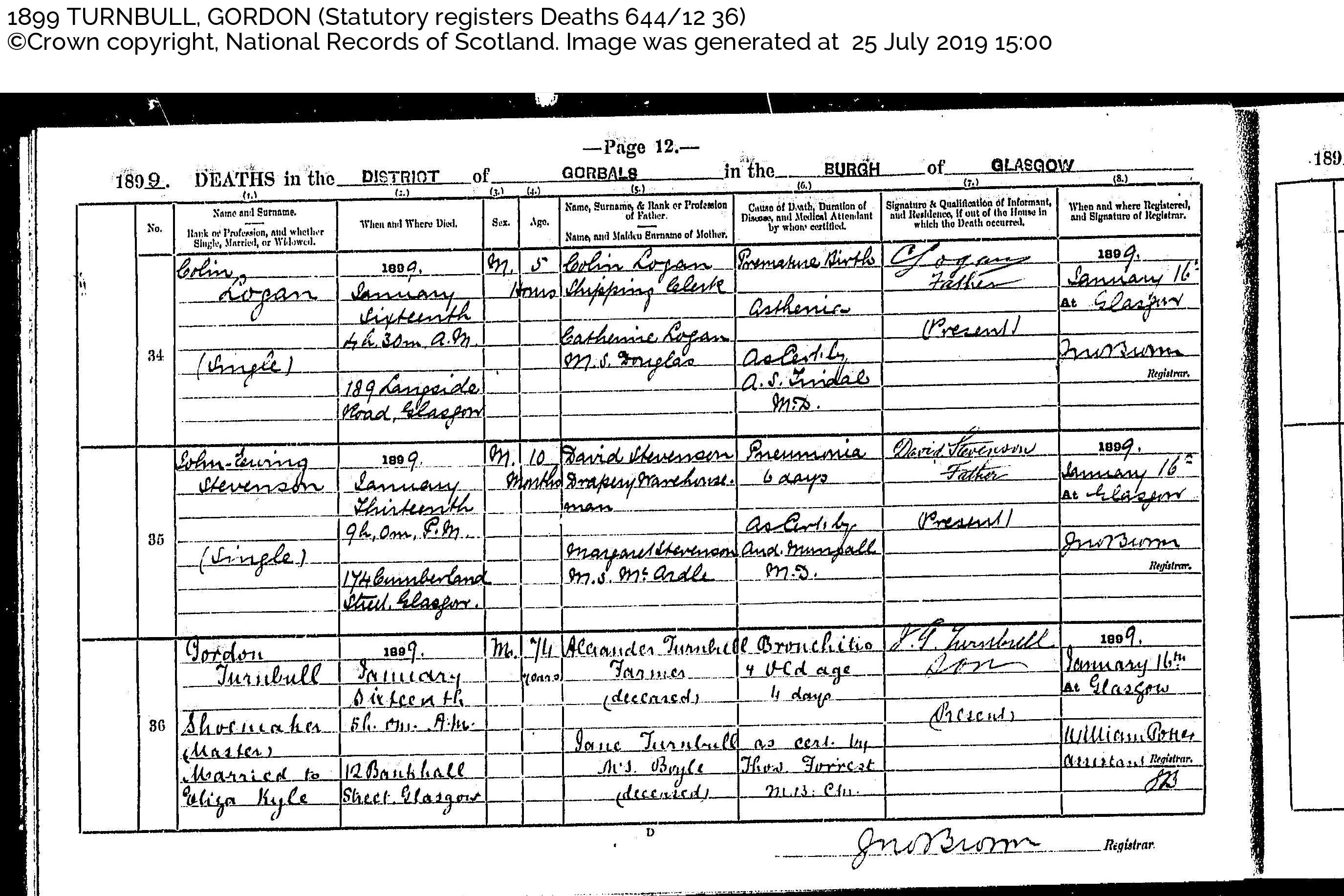 | Occupation | Gordon Turnbull was Shoemaker. |