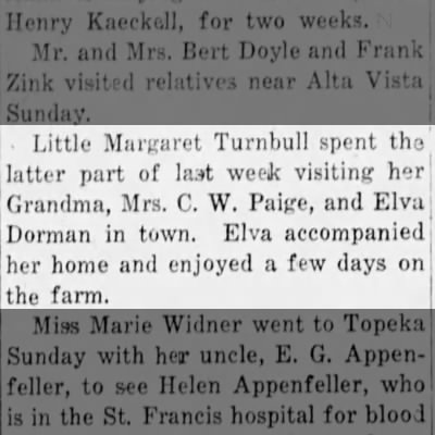 - [S1266] Ancestry.com, U.S., Newspapers.com™ Obituary Index, 1800s-current, Council Grove Republican; Publication Date: 24 Oct 1966; Publication Place: Council Grove, Kansas, USA; URL: https://www.newspapers.com/image/345080573/?article=0e0bc025-52b3-4f15-becd-6af94b1ff21b&focus=0.61739486,0.5962586,0.73471713,0.7455751&xid=3355, See newspaper information provided with each entry.