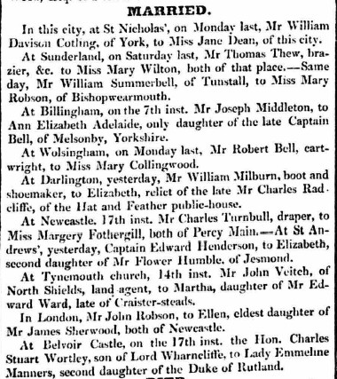 Turndull Fothergill marr 13 Feb1831 Durham Advertisor
