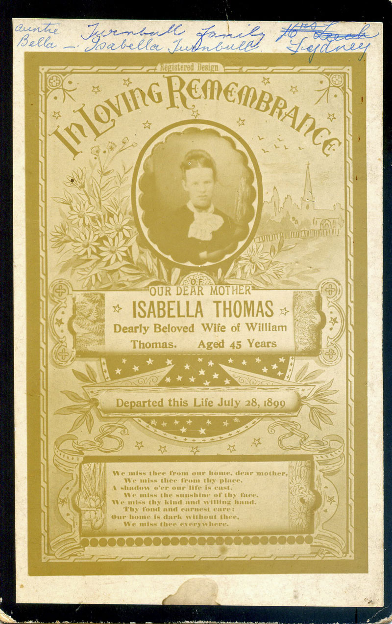 The writing under the water stain reads - To Alice with love from yours affectionately Jessie Prowd nee Turnbull