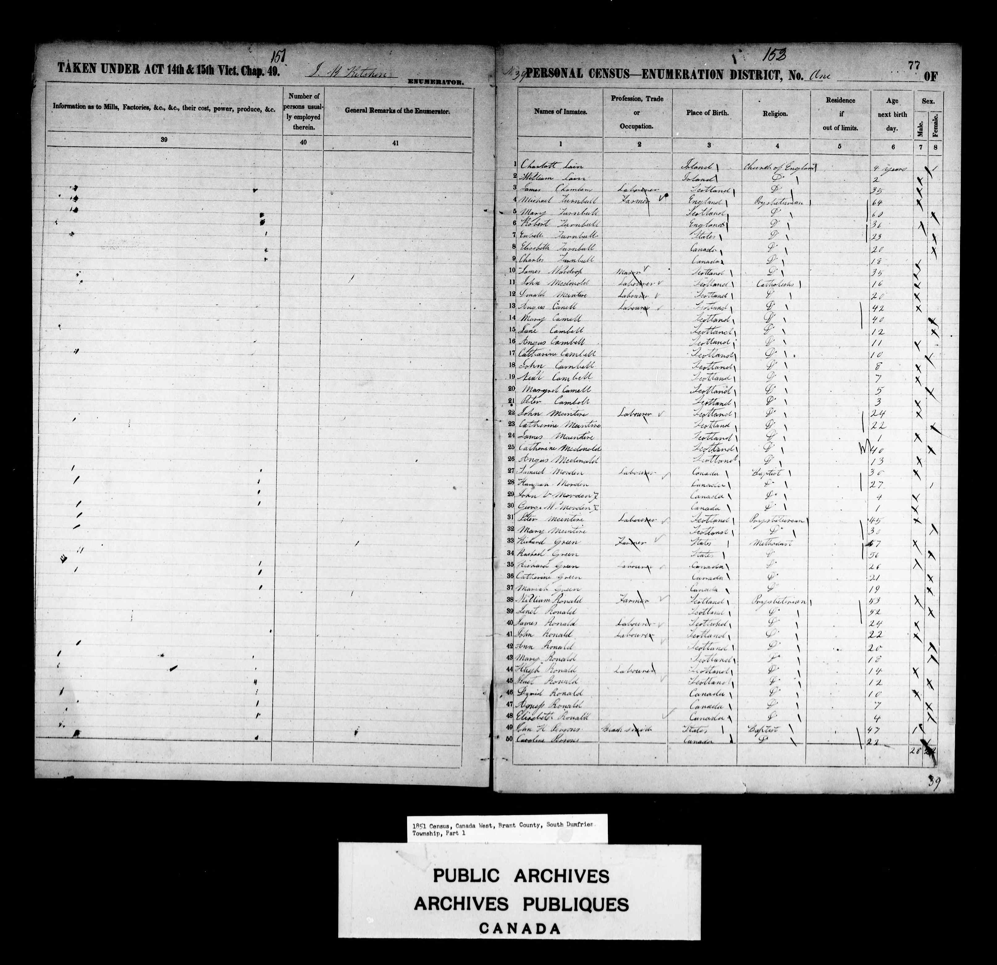 1851 Census of Canada East, Canada West, New Brunswick, and Nova Scotia