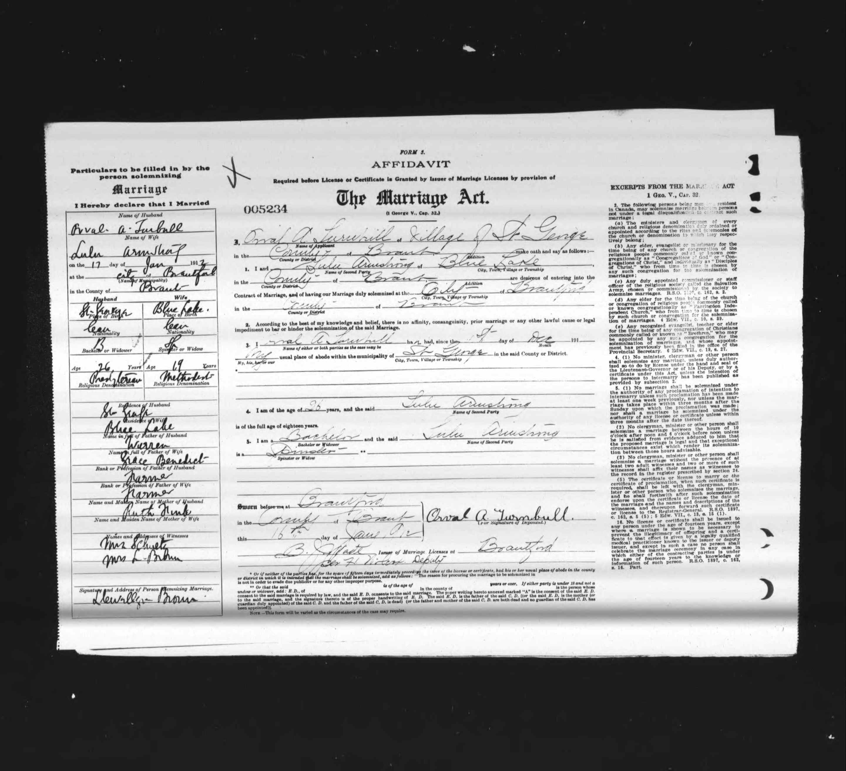 Ontario, Canada, Marriages, 1801-1928, 1933-1934